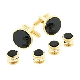 JJ Weston gold plated cufflinks and shirt stud set with onyx with presentation box. Made in the U.S.A: Jewelry