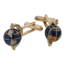 JJ Weston gold plated handpainted enamel spinning globe cufflinks with presentation box. Made in the U.S.A: Jewelry