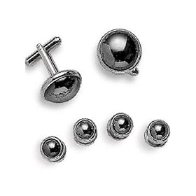 Tuxedo Cufflinks and Studs - Hematite Stone in Silver Setting: Jewelry