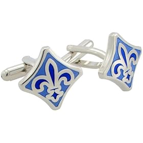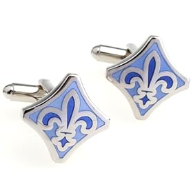 Fleur-De-Lis Sign Cufflinks Blue Cuff Links Square Cuff-Links: Jewelry