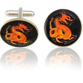 Chinese Red Dragon Coin Cuff Links-CLC-CL850: Jewelry