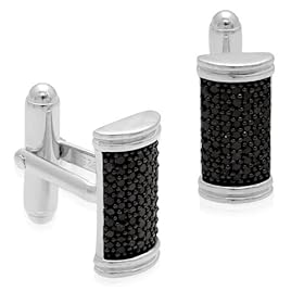 Men"s Sterling Silver Black Diamond Cuff Links (1.00 cttw): Jewelry