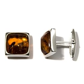 Sterling Silver Honey Amber Square Cuff Links: Jewelry