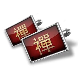 Cufflinks "Zen" Chinese characters, letter red / yellow - Hand Made Cuff Links: A MAN"S CHOICE: Jewelry