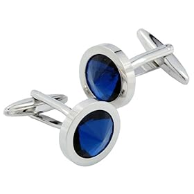 Faux Sapphire Silver Cufflinks with Cubic Zirconia CZ by Cuff-Daddy: Cuff-Daddy: Jewelry