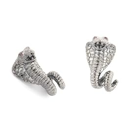Darkened metal king cobra cufflinks with amethyst crystal eyes with presentation box: Jewelry