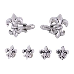 Fleur De Lis Cufflinks and Studs in Antique Silver by Cuff-Daddy: Cuff-Daddy: Jewelry