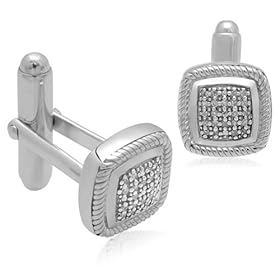 Men"s Sterling Silver Cushion Diamond Cuff Links (1/10 cttw, I-J Color, I2-I3 Clarity): Jewelry