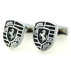 Silver Edition Scuderia Ferrari logo Coat of Arms Black Stripes Cufflinks Cuff Links: Jewelry