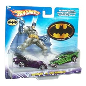 Hot Wheels Year 2006 DC Comics 1:64 Scale 2 Pack Die Cast Car - Batman Batmobile vs. The Riddler Car Plus Bonus Sticker: Toys & Games