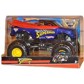Superman - 1:24 Scale (Large Version) Hot Wheels Monster Jam Truck with Monster Tires, Working Suspension and 4 Wheels Steering: Toys & Games