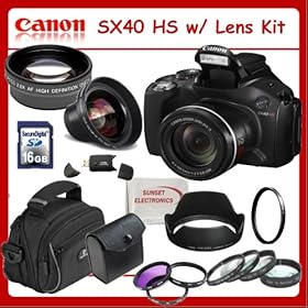 Canon SX40 HS 12.1MP Digital Camera with SSE "Lens Package" Includes: 0.45x Wide Angle Lens, 2X Telephoto Lens, 3 Piece Filter Kit (UV,CPL,FLD), 4 Piece Macro Close Up Kit (+1,+2,+4,+10), Ring Adapter, 16GB SDHC Memory Card, Card Reader, Soft Carrying Case & Microfiber Cleaning Cloth: Camera & Photo