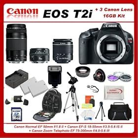 Canon EOS Rebel T3i Digital Camera Kit Includes: Canon EOS Rebel T3i Digital Camera with 18-55mm Lens, Sigma 70-300mm f/4-5.6 APO-M DG Macro Lens, 0.45 Wide Angle Lens, 2x Telephoto Lens, 2 extended Life Batteries, Rapid Travel Charger, Full Size Tripod, 3 Piece Filter Kit(UV-CPl-FLD), Flash, 8GB Memory Card, Memory Card Reader, Cleaning Kit with SSE Microfiber Cleaning Cloth, Table Top Tripod, LCD Screen Protectors and Soft Carrying Case: Camera & Photo