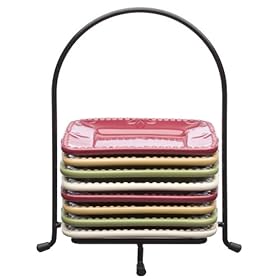 Signature Housewares Sorrento 6-Inch Stoneware Plates with Serving Caddy, Assorted Colors, Set of 8: Kitchen & Dining