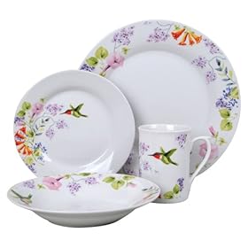 Gibson Garden Bird 16-Piece Fine China Dinnerware Set: Kitchen & Dining