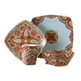 222 FIFTH Resplendent Spring 16-Piece Square Dinnerware Set, Service for 4: Kitchen & Dining