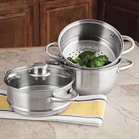 Range Kleen 4 Piece 3 Quart sauce pan with lid, steamer & double boiler insert: Kitchen & Dining