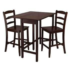 Furniture By Winsome Lynnwood 3pc Drop Leaf High Table with 2 Counter Ladder Back Stool/Antique Walnut: Home & Kitchen