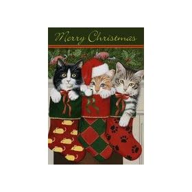 Merry Christmas Stocking Kittens - Large Size 28 Inch X 40 Inch Decorative Flag: Patio, Lawn & Garden