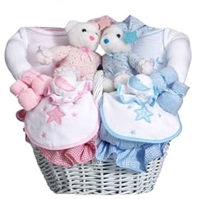 Baby Shower Gift Basket for Twin Babies - Boy and Girl - Pink and Blue: Baby