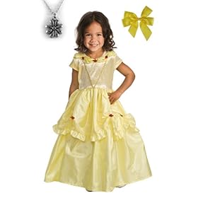 Belle Princess Dress with Wonderchamrs Necklace - MEDIUM (3-5): Toys & Games
