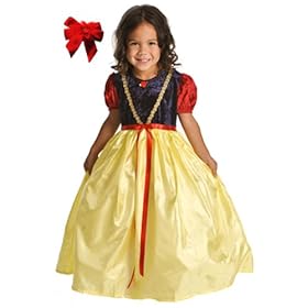 2 Item Bundle: Little Adventures Snow White Princess Dress Up Costume + Hair Bow- Girls Size 5-7- Machine Washable!: Toys & Games