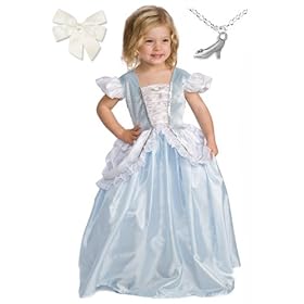 Cinderella Princess Costume with Hair Bow and Wondercharms Necklace - size MEDIUM (3-5): Toys & Games