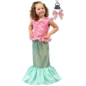 Magical Mermaid Dress-up Costume with Hair Bow and Wondercharms Necklace - MEDIUM (3-5): Toys & Games