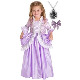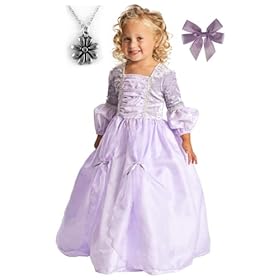 2 Item Bundle: Little Adventures Purple & White Rapunzel Princess Dress Up Costume + Hair Bow-Girls ages 5-7-Machine Washable: Toys & Games