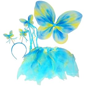 Blue & Green Neon Fairy Butterfly Costume Tutu Set (4 pc): Toys & Games