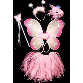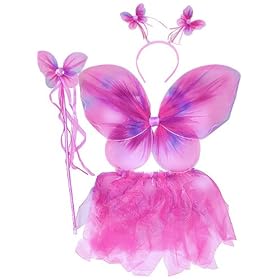 Pink Butterfly Fairy Princess 5 Piece Costume Set. Includes Wand, Wings, Antennas, Tutu, Hair-tie.: Toys & Games