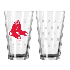 Boston Red Sox Satin Etch Pint Glass Set: Sports & Outdoors