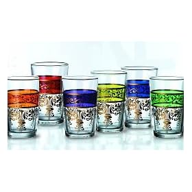 Moroccan Tea Glasses (set of 6 assorted colors): Kitchen & Dining