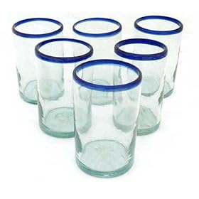 Clear and Blue Drinking Glasses, "Cobalt Kiss" (Set of 6): Kitchen & Dining