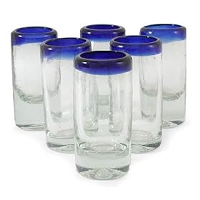 Blue and Clear Tequila Glasses, "Tequila Blues" (Set of 6): Kitchen & Dining