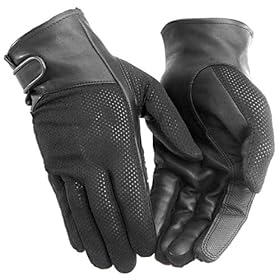 LEATHER MESH GLOVES MOTORCYCLE BIKE GLOVE Black: Clothing