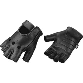 Raider Black Medium Fingerless Leather Gloves with Cushioned Gel Palm: Automotive