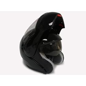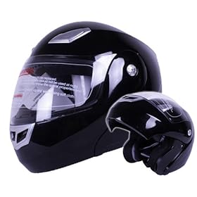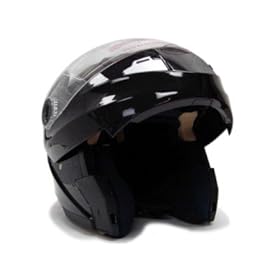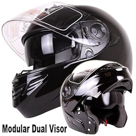 BLACK DUAL VISOR MODULAR MOTORCYCLE FLIP UP HELMET ~L (DP999-L-K): Automotive