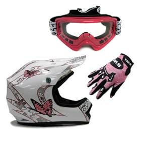 Youth White Pink Butterfly Dirt Bike ATV Motocross Off-road Helmet DOT with Goggles and Gloves (Small): Automotive