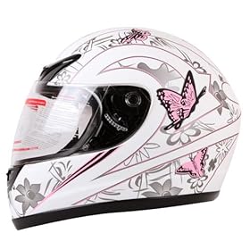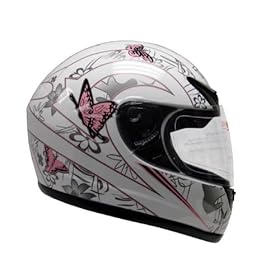 Pink White Butterfly Street Sport Bike Motorcycle Full Face Helmet DOT (Small): Automotive