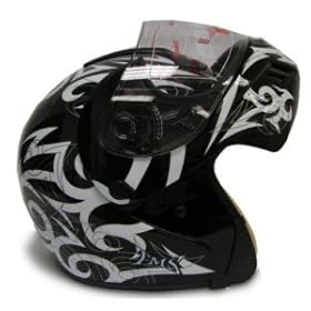 Black Tattoo Flip Up Modular Motorcycle Street Sport Bike Full Face Helmet DOT (XLarge): Automotive