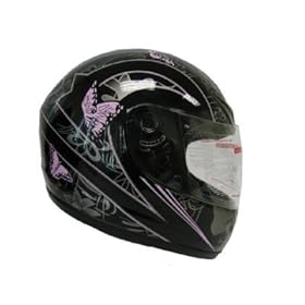 TMS Black Pink Butterfly Street Sport Bike Motorcycle Full Face Helmet DOT (Medium): Automotive