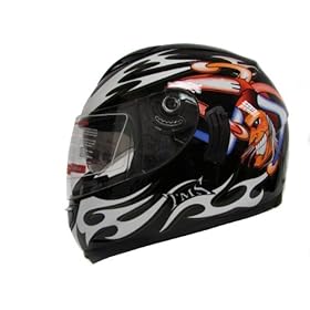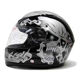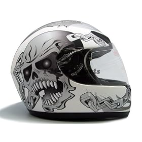 Black Silver Skull Chain Full Face Motorcycle Street Sport Bike Helmet DOT (Large): Automotive