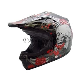Youth Black Rose Skull Dirt Bike Motocross ATV MX Helmet DOT (Medium): Automotive
