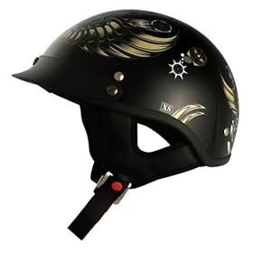 VCAN V531 Cruiser Amazing Dark Angel Gloss Black X-Large Half Helmet: Automotive