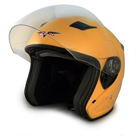 VCAN V526 Metro Yellow Medium Open Face Helmet with Full Face Shield: Automotive