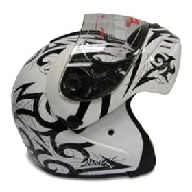 White Tattoo Flip Up Modular Motorcycle Street Sport Bike Full Face Helmet DOT (XX-Large): Automotive