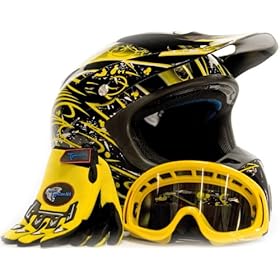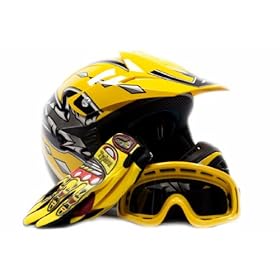 Typhoon Adult Motocross Helmet Gloves and Goggles Set Yellow (Large): Automotive