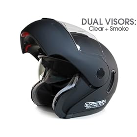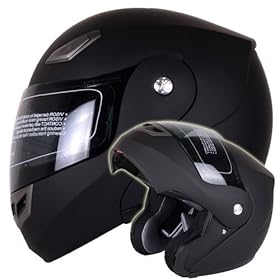 Dual Visor Matte Black Full Motorcycle Helmet DOT (X-Large): Automotive