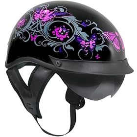 DOT Butterfly Flat Black Purple Butterfly Women"s Helmet - Size : Small: Automotive